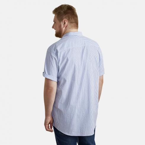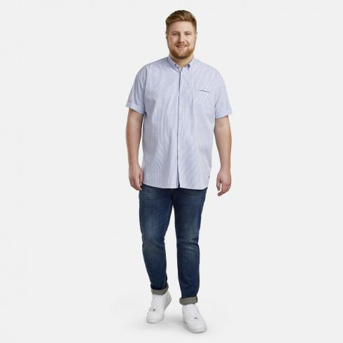 Button down collar Rounded hem ends Chest pocket with contrast piping 100% cotton